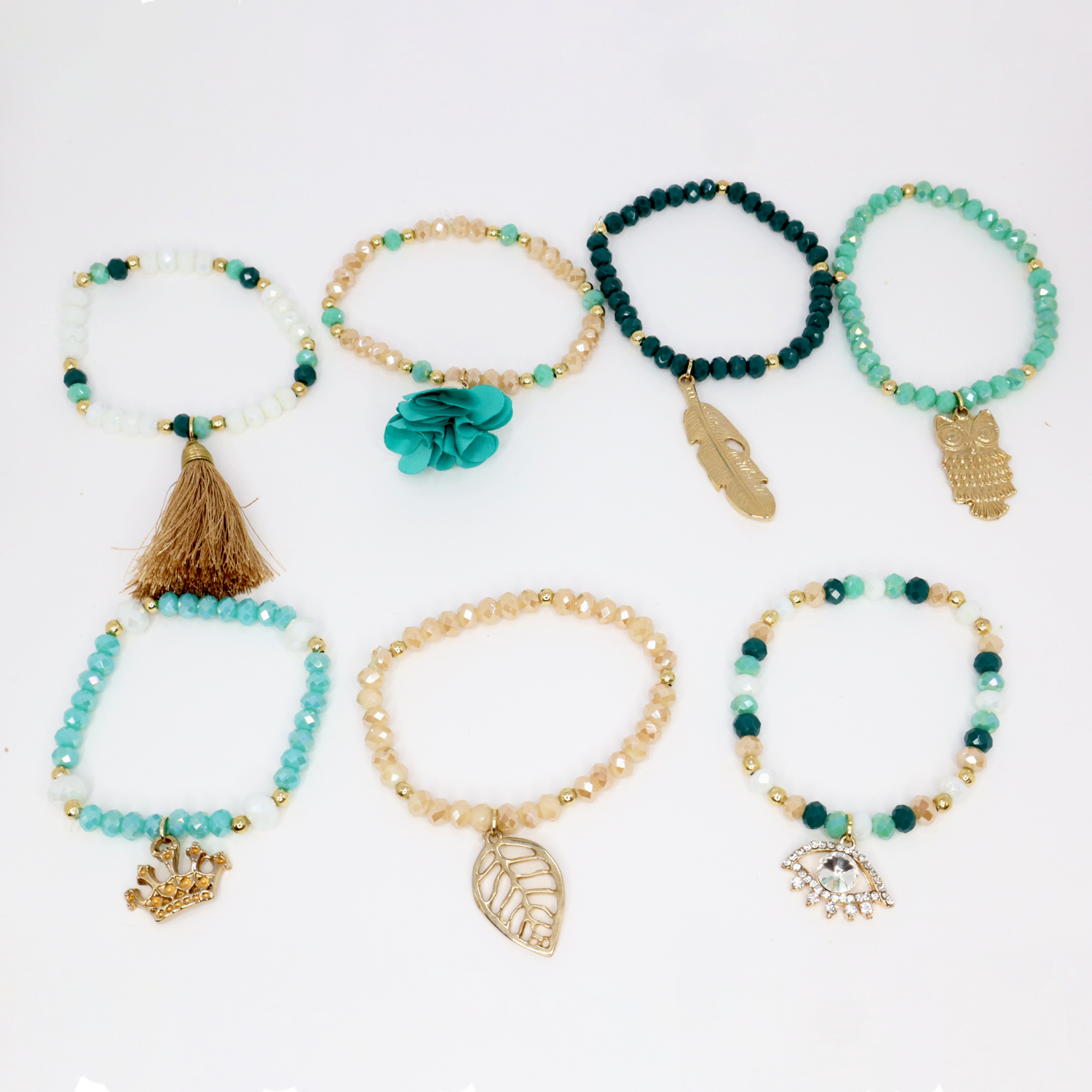 Bracelet Set of 7 - Semanario (Teal and Green)
