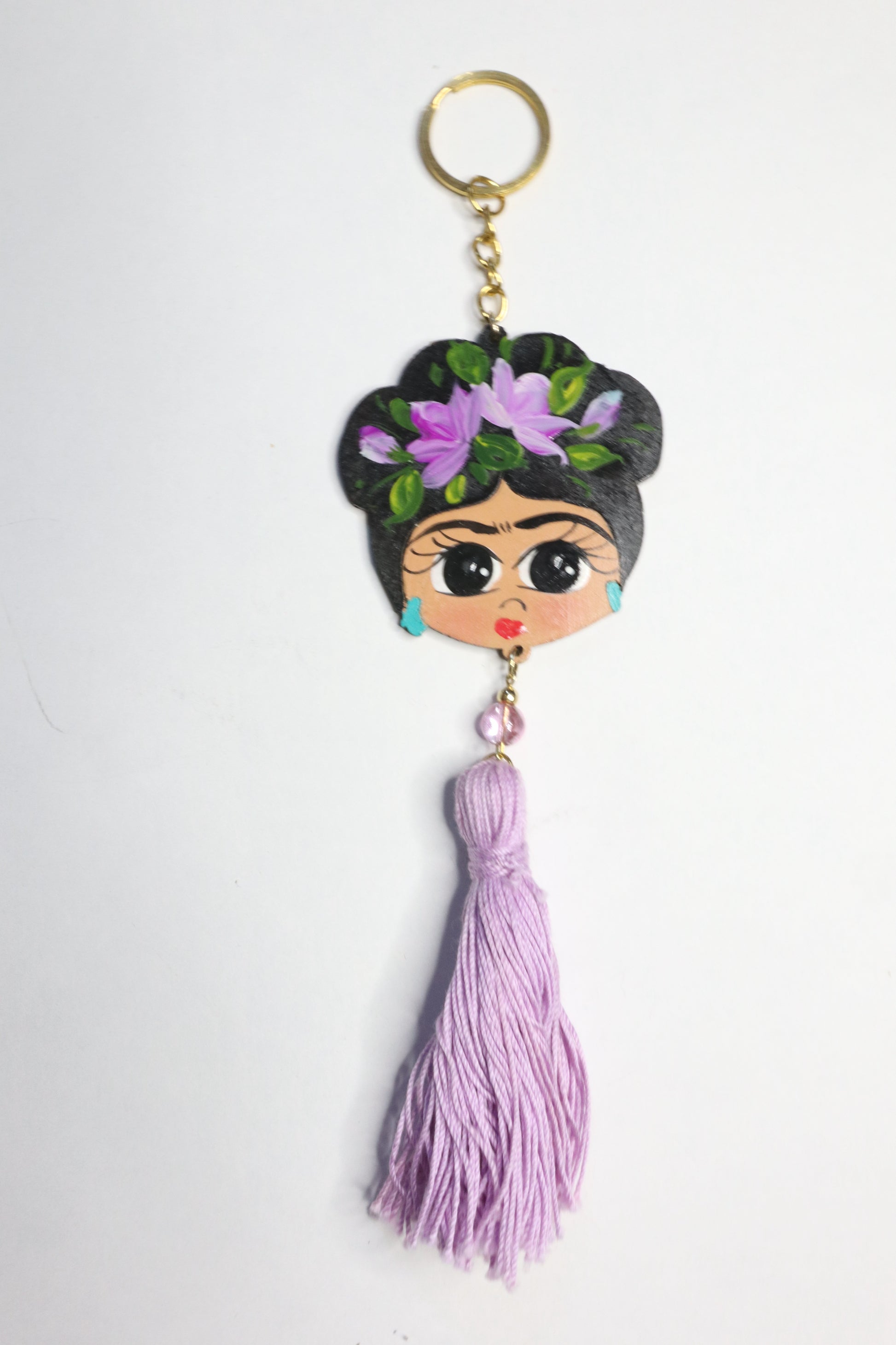Adorn your bag, keys, or anything with this keychain! The Keychain is made of hand painted wood with a gold plated keyring. The hanging accessory is made with mercerized cotton yarn.